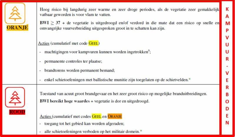 ORANJE of ROOD : GEEN TOELATING VOOR KAMPVUUR.